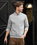 DETAILS: Combed long-staple organic cotton. Brushed fleece lining with short-shave treatment. Forwarded shoulder seems. Ribbed collar, hem and sleeves. Organic cotton. Recycled polyester.